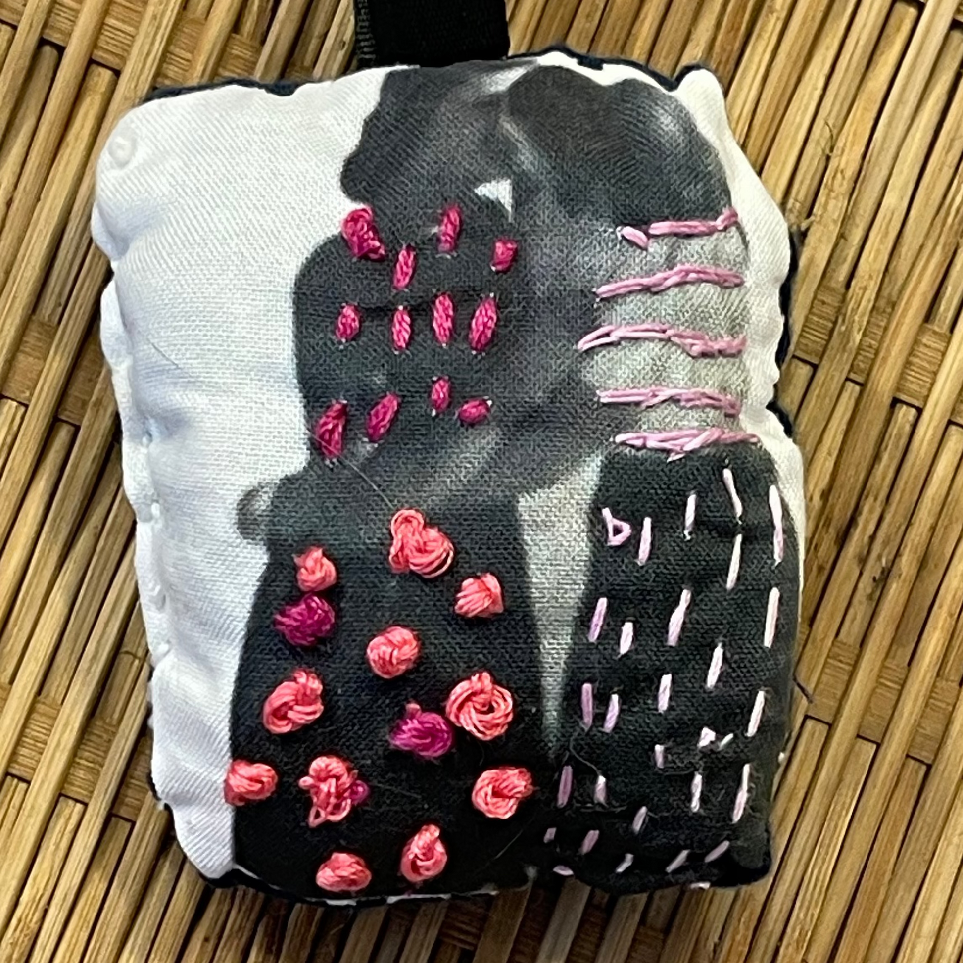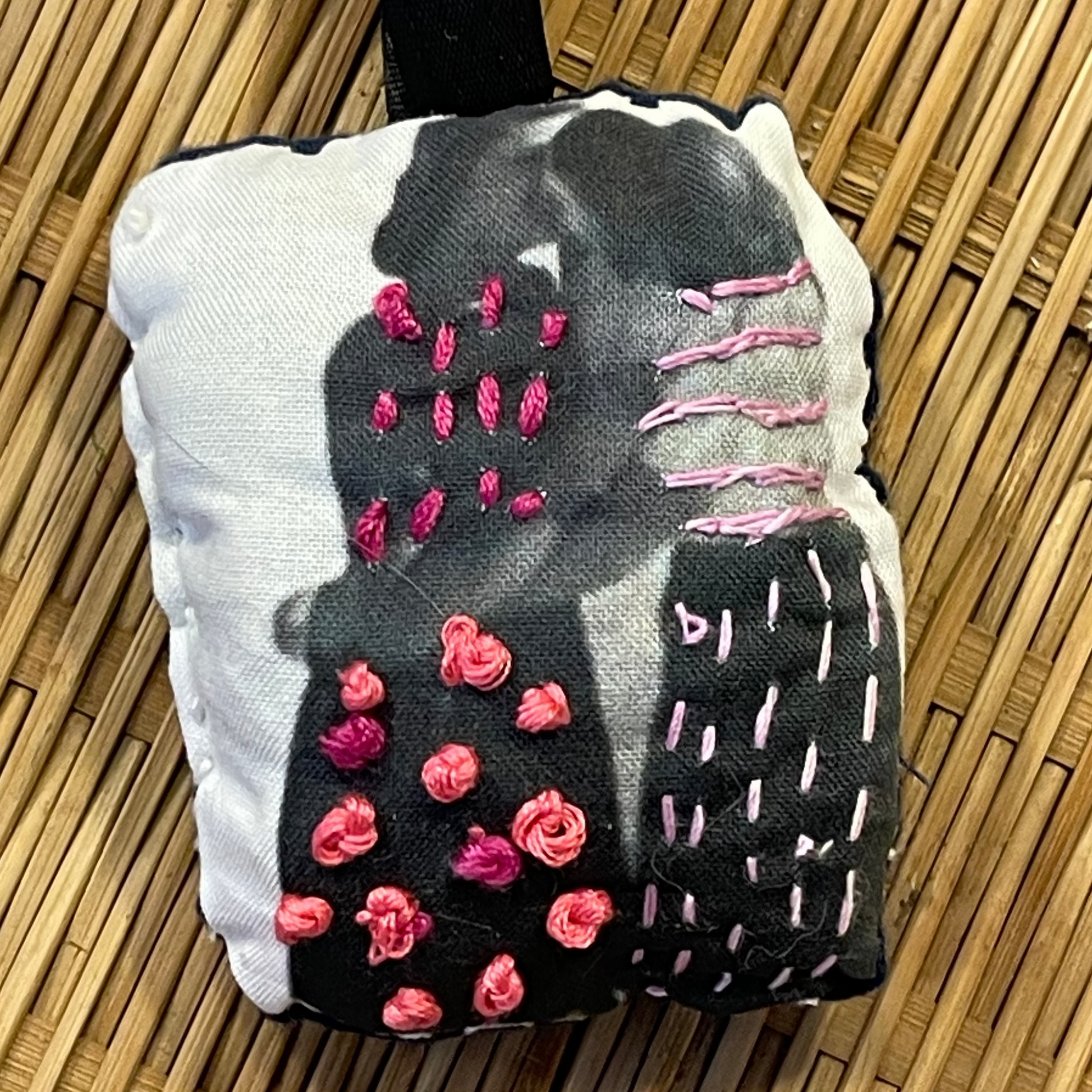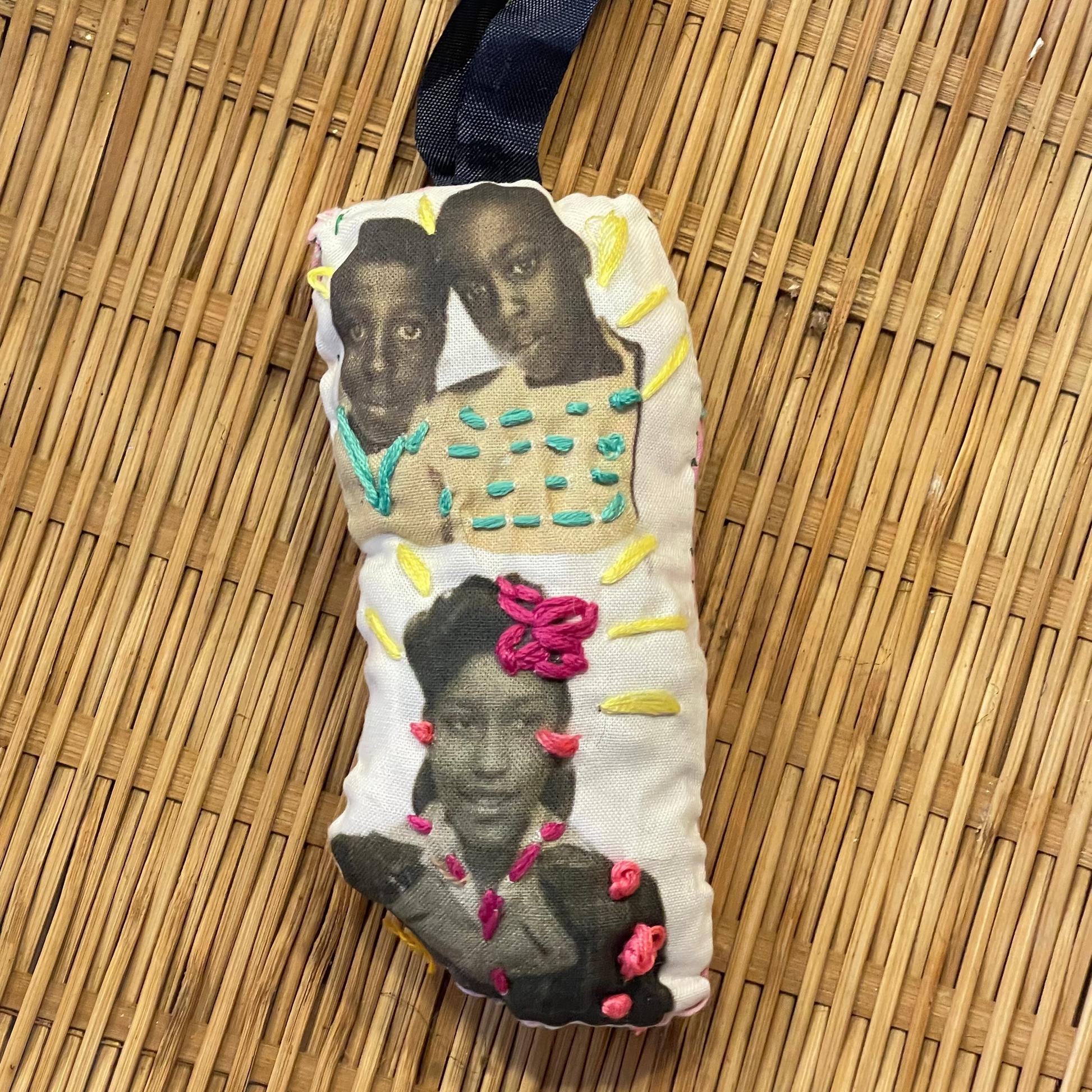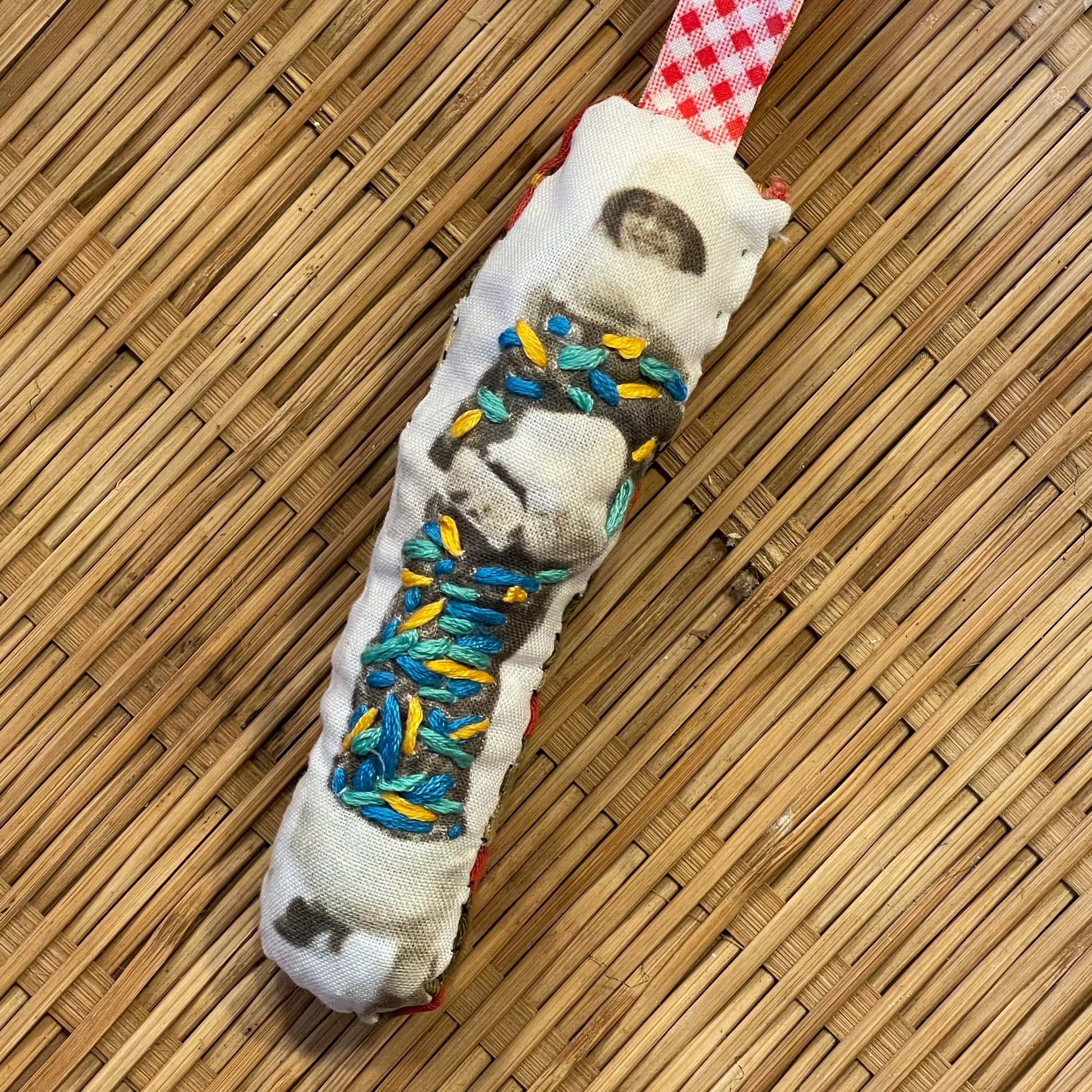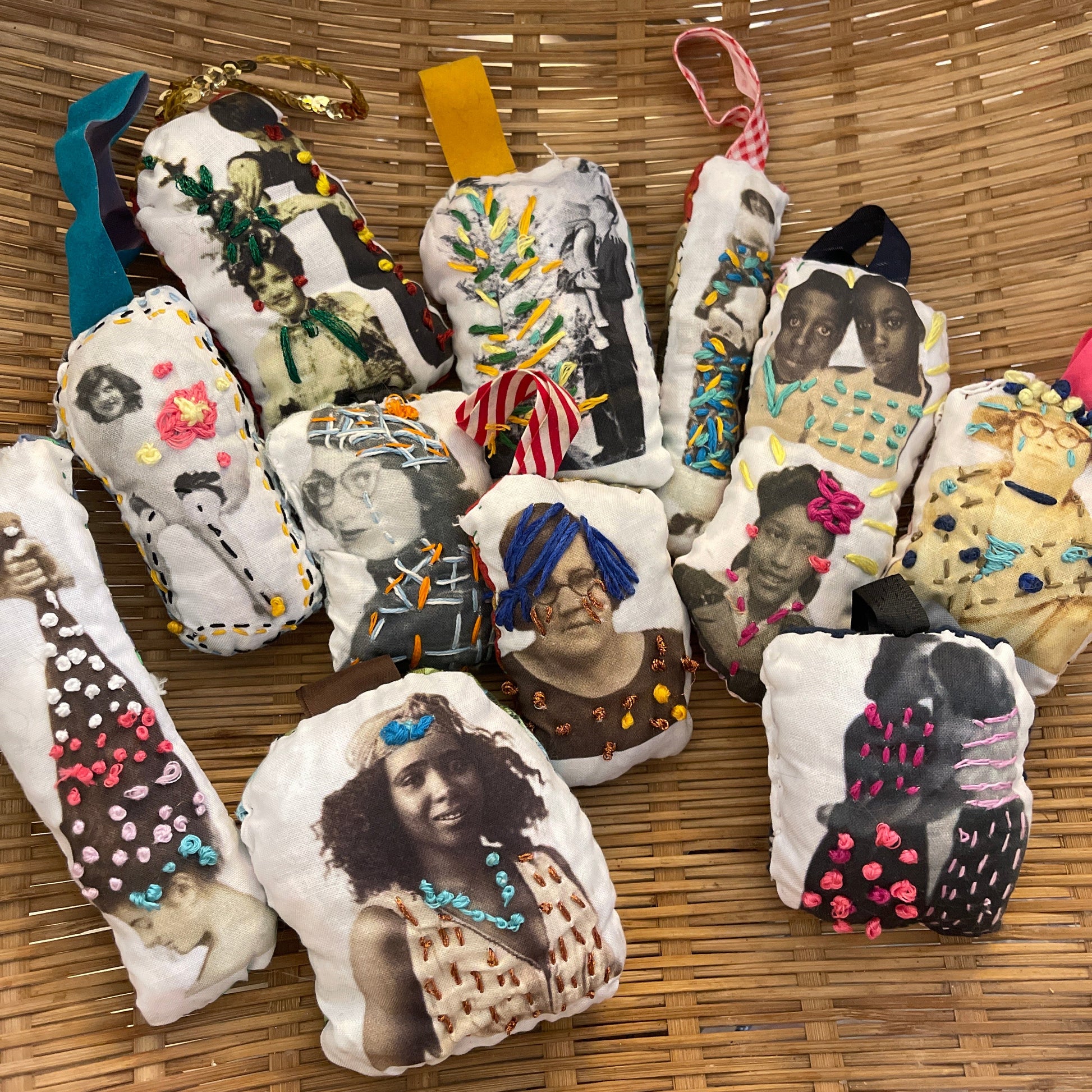 Each ornament features a vintage photograph printed onto cotton fabric and backed with recycled fabric as well as stuff with scrap fabric to remain sustainable. Each ornament is also embroidered with colored floss to enhance the images and add some quirk and fun.