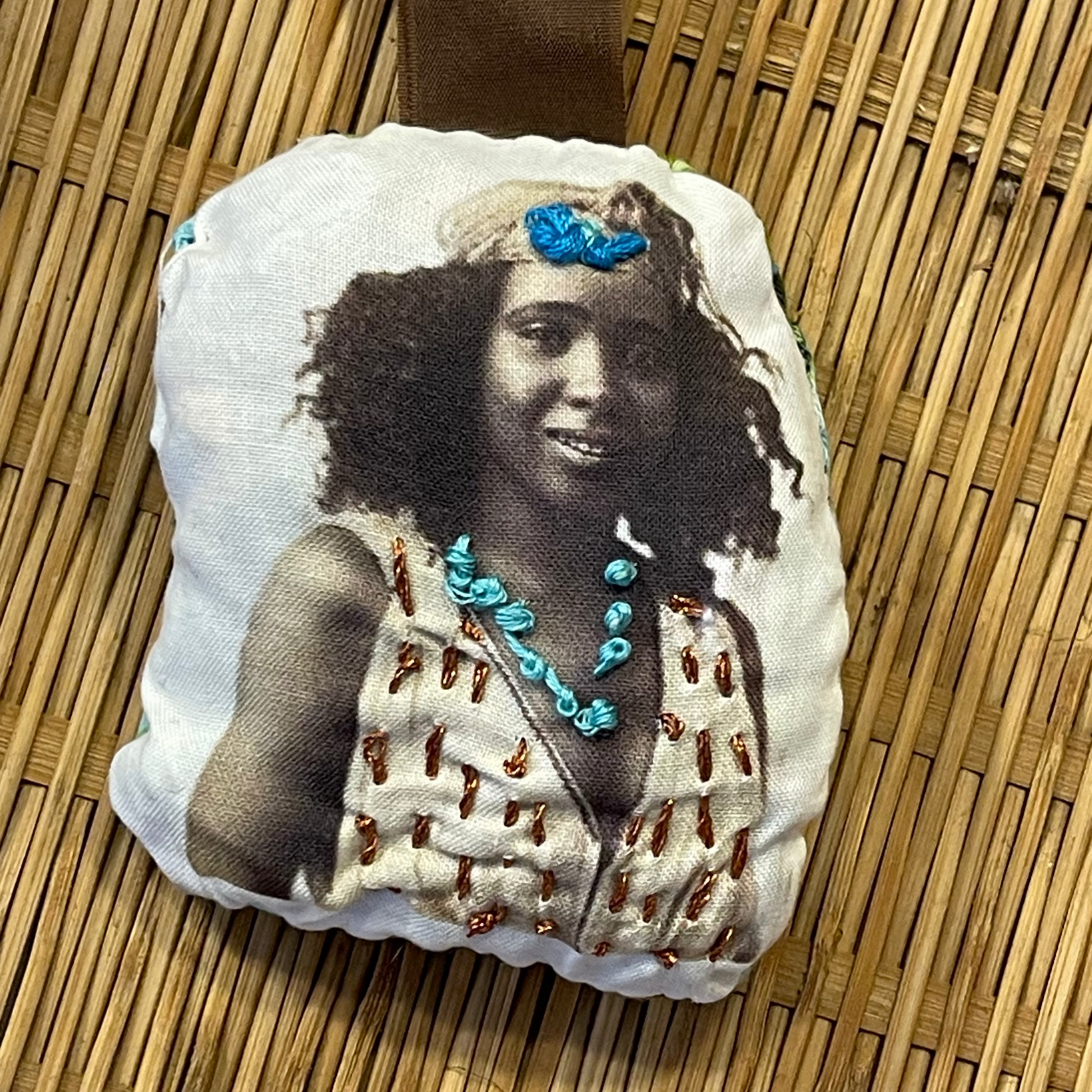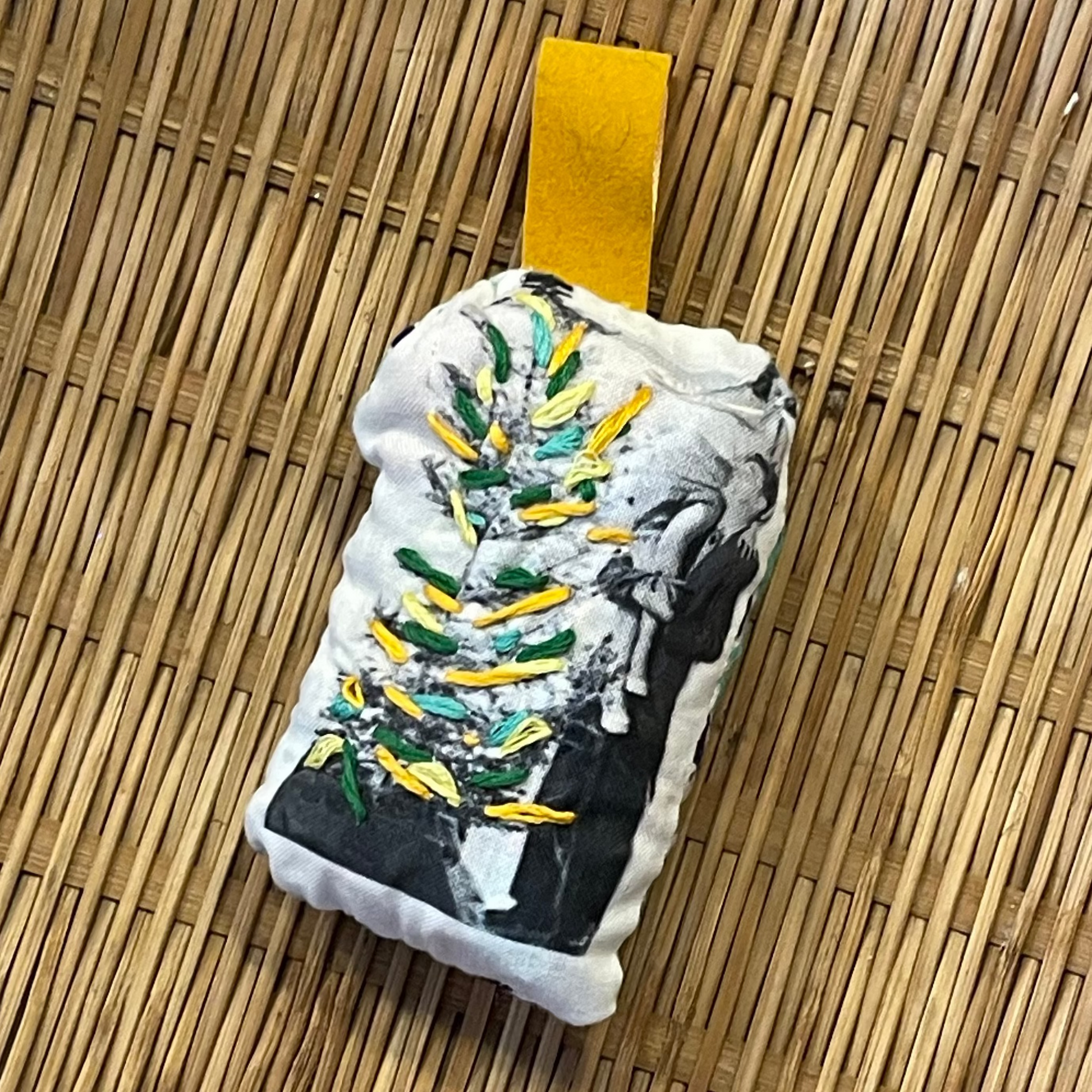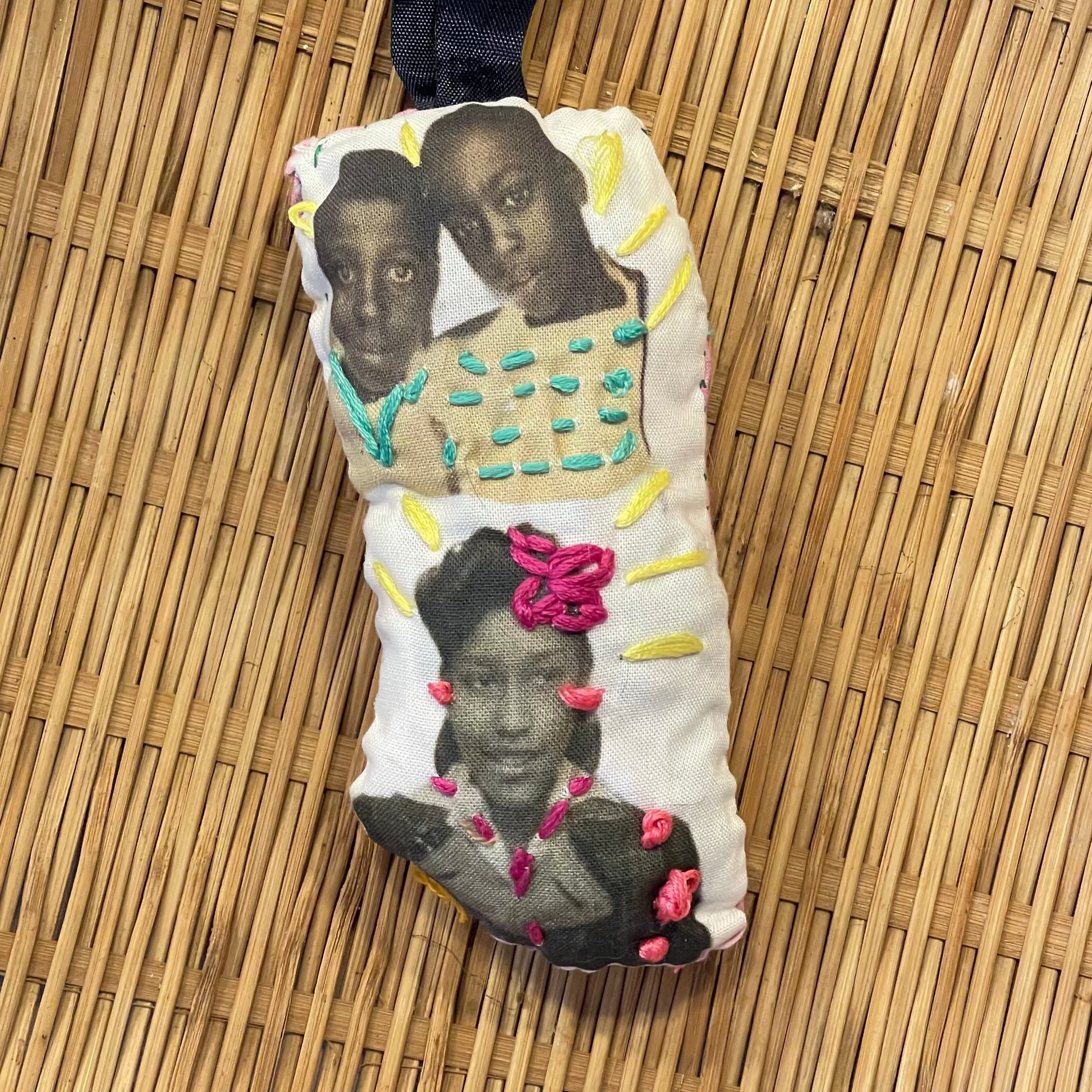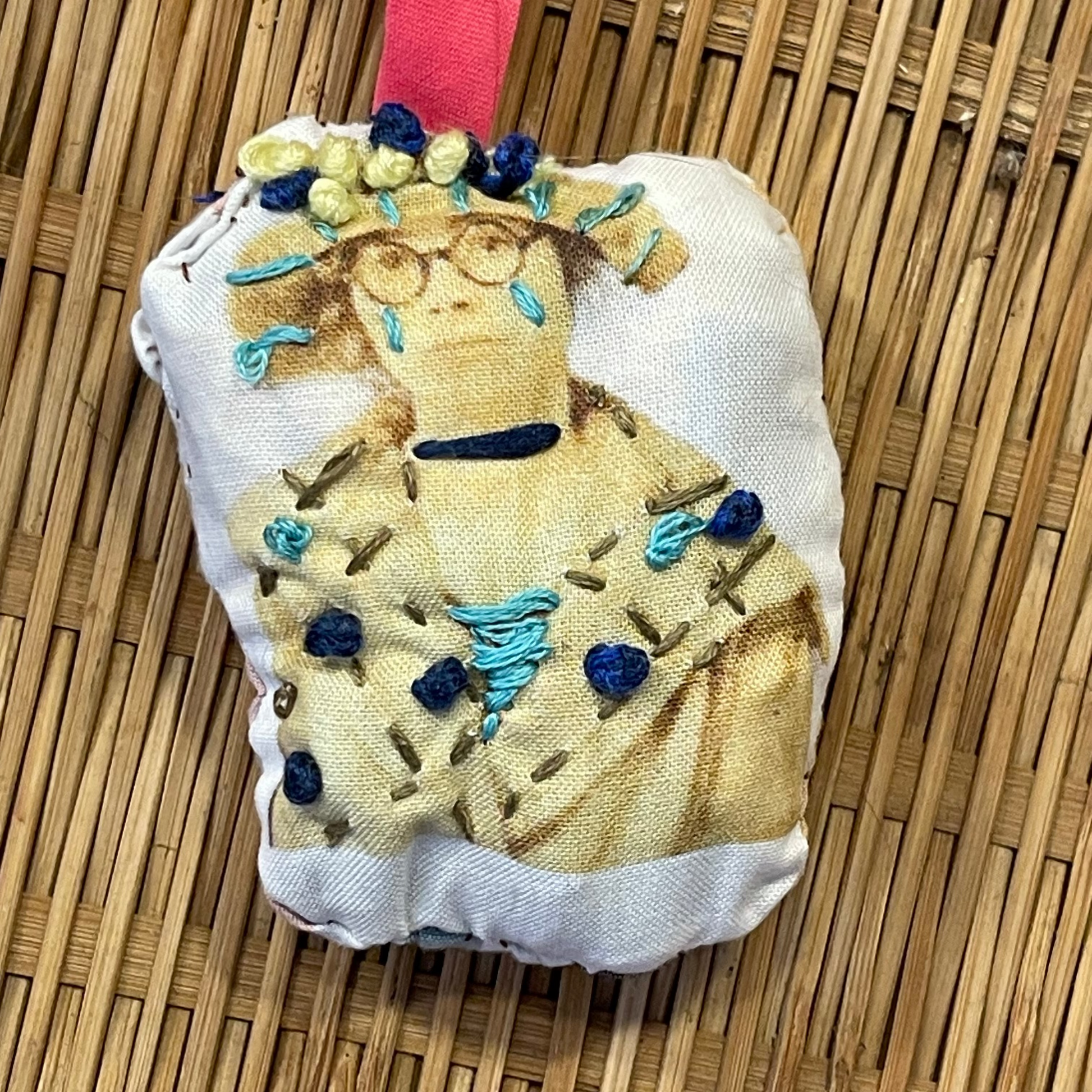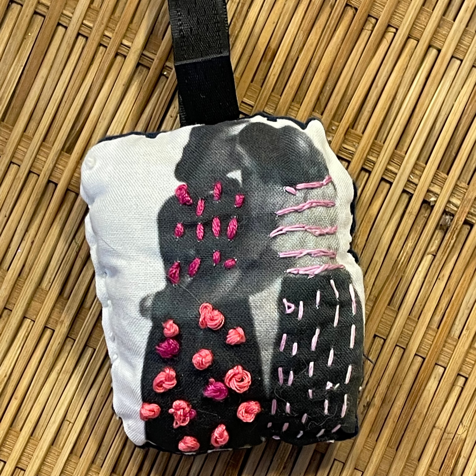 Each ornament features a vintage photograph printed onto cotton fabric and backed with recycled fabric as well as stuff with scrap fabric to remain sustainable. Each ornament is also embroidered with colored floss to enhance the images and add some quirk and fun.