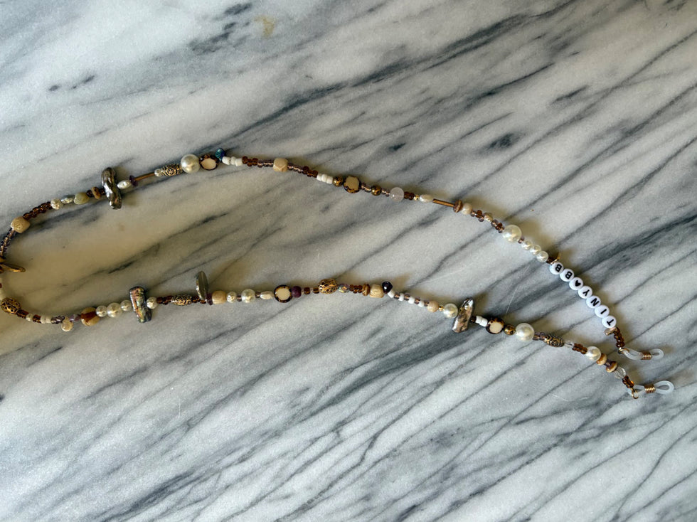Fantastic sunglass chains from Edgewater’s own NoYeah!! Choose from a gorgeous variety of beaded chains and phrases. 22”-36”.