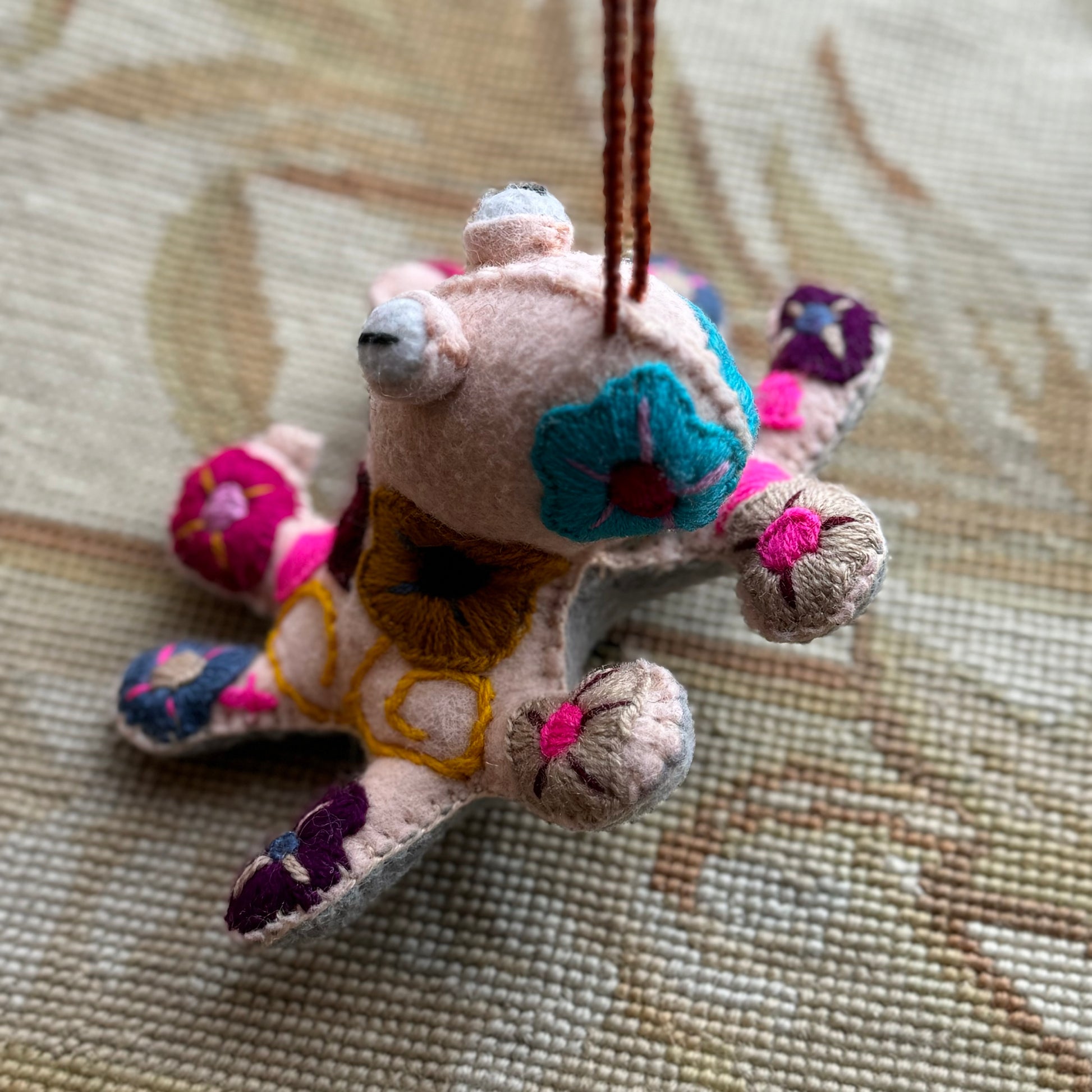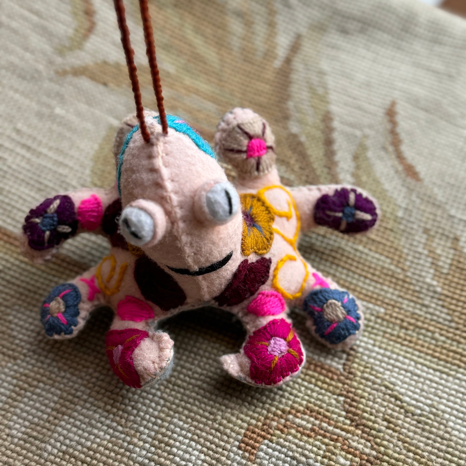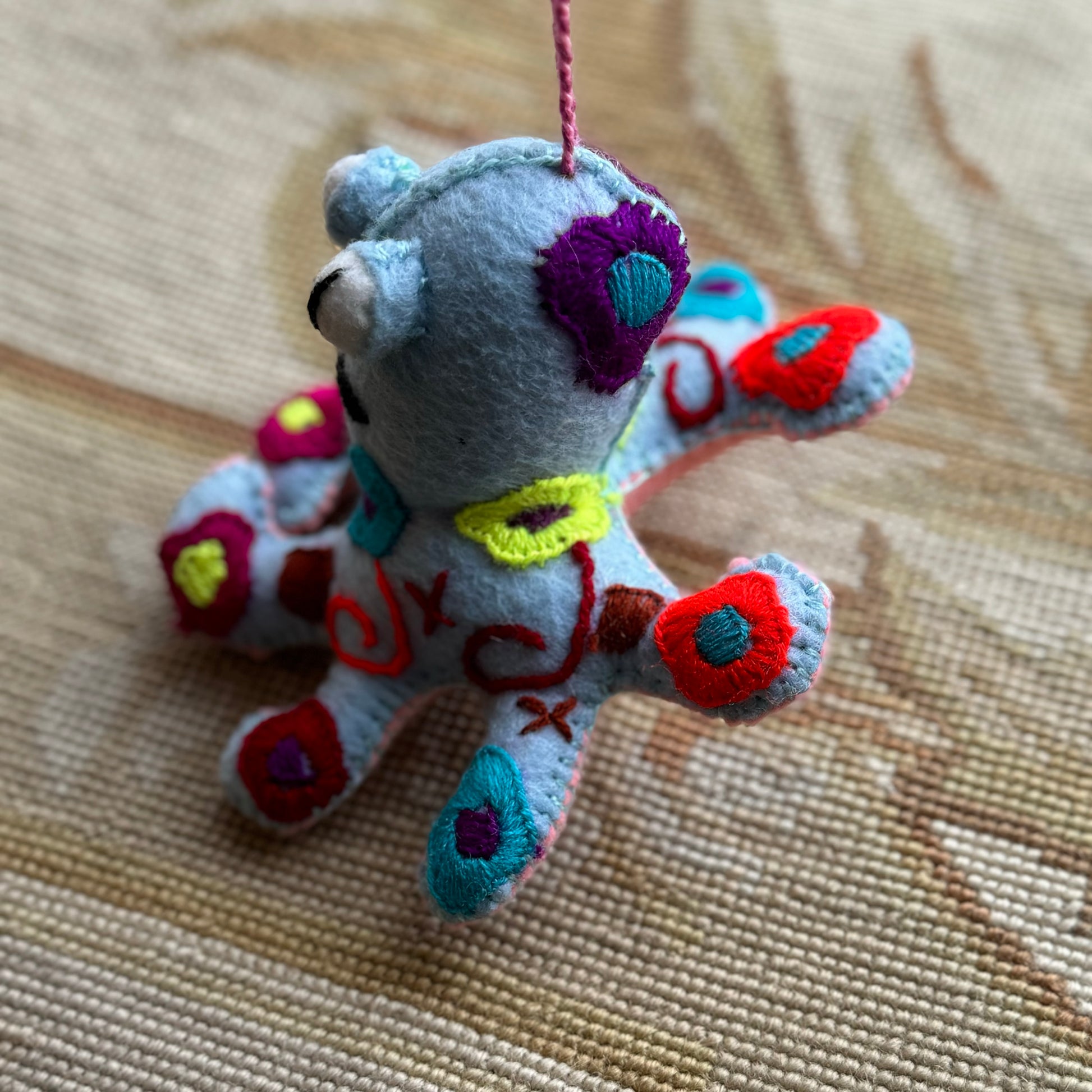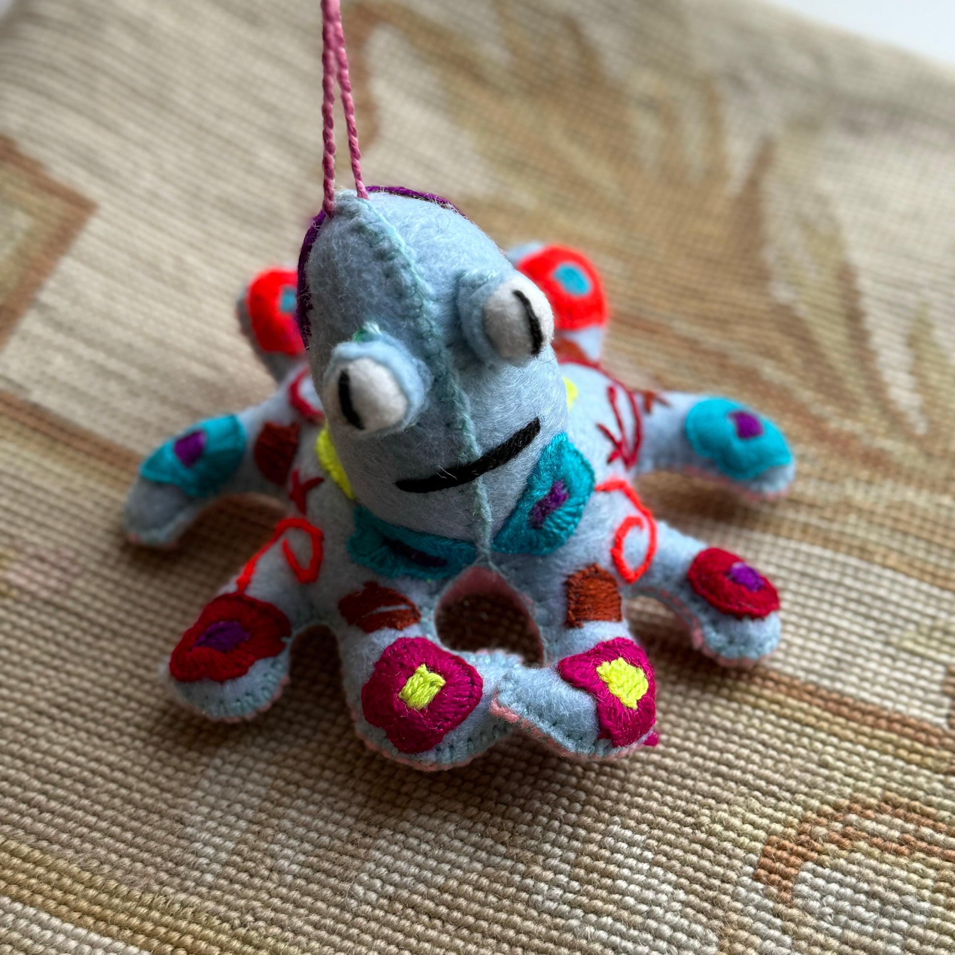 Spectacular embroidered octopi! Each one full of rich, color, and hand embroidered. Hecho en México. Wool and Cotton.