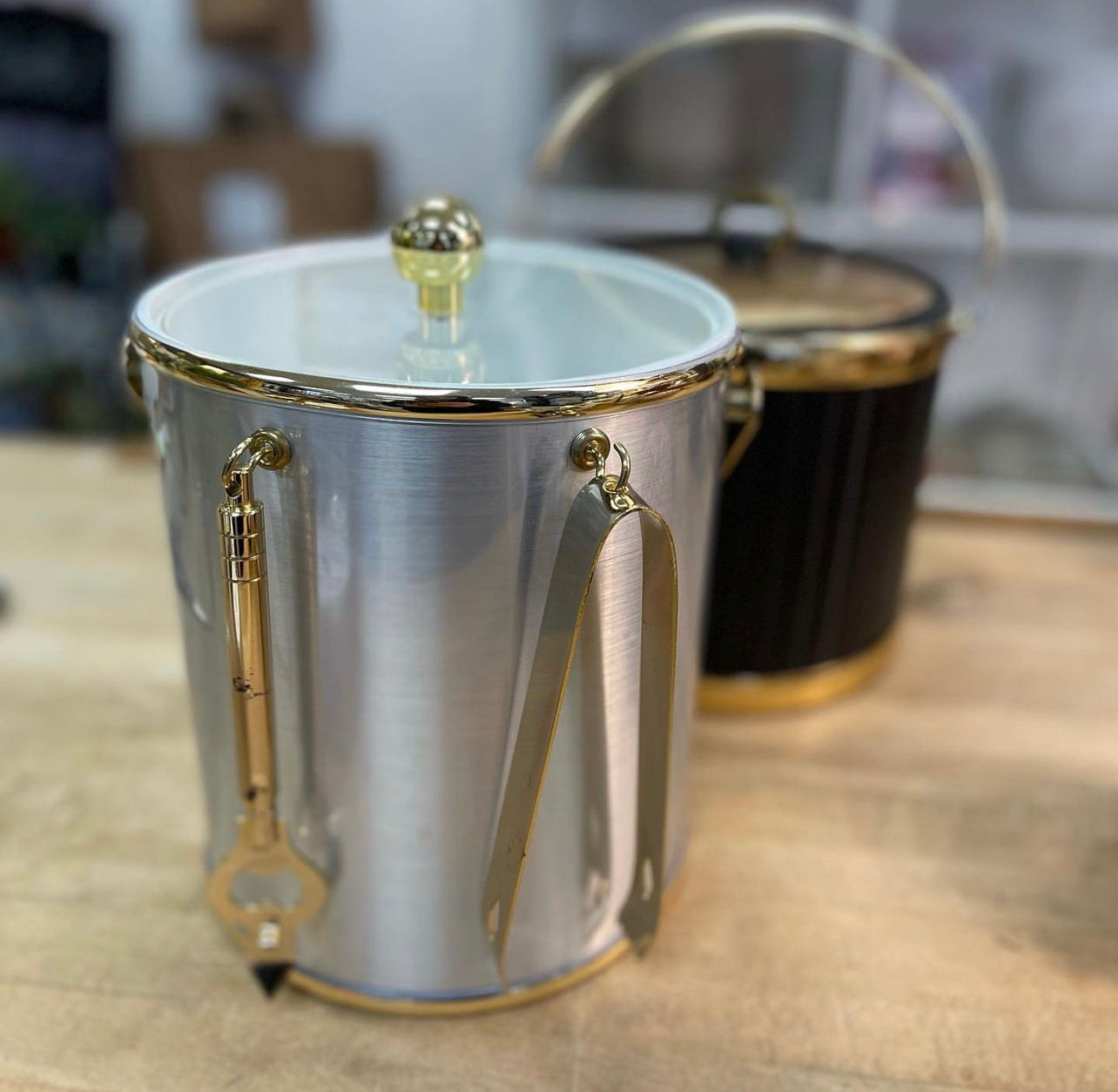 Silver & Gold Vintage Ice Bucket. Includes Bar tools and deadstock Box.