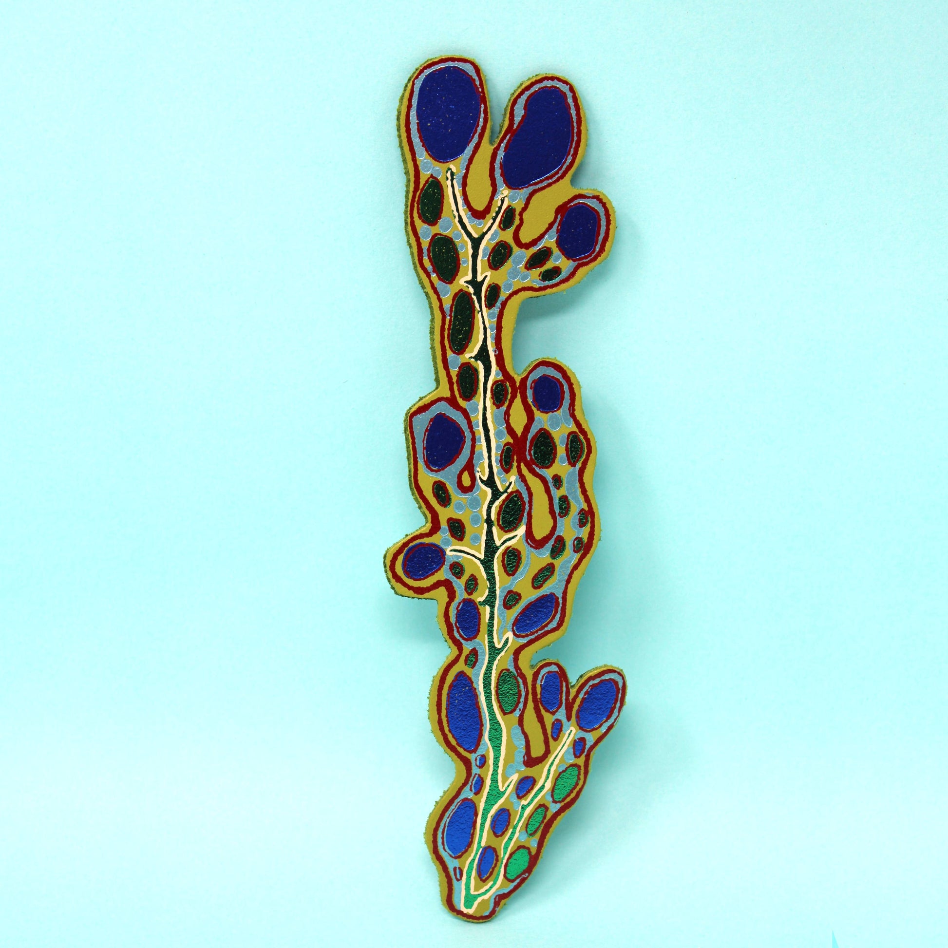 Designed to replicate the organic lines of sea kelp, combining delicate lines with bold pops of colour to create a striking abstract piece.